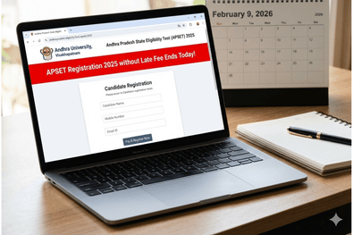 APSET Registration 2025: The registration window for APSET 2025 without a late fee closes today, February 9, 2026, giving candidates one last opportunity to apply at the regular fee. The Andhra Pradesh State Eligibility Test (APSET) is conducted by Andhra University on behalf of the Andhra Pradesh government to assess eligibility for Assistant Professor positions in state universities and colleges.