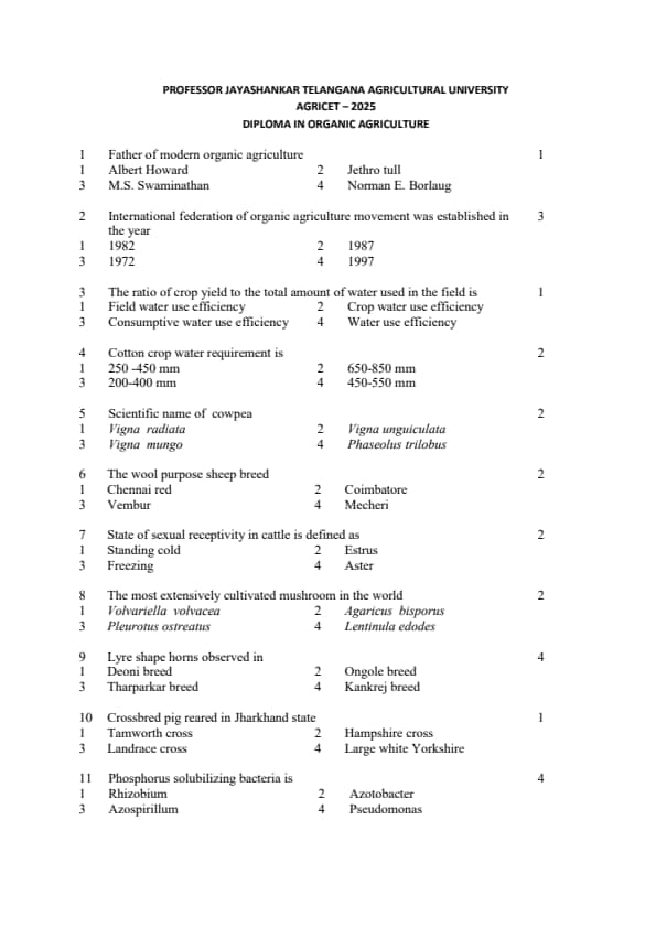 | TS AGRICET 2023 Organic Agriculture Question Paper |