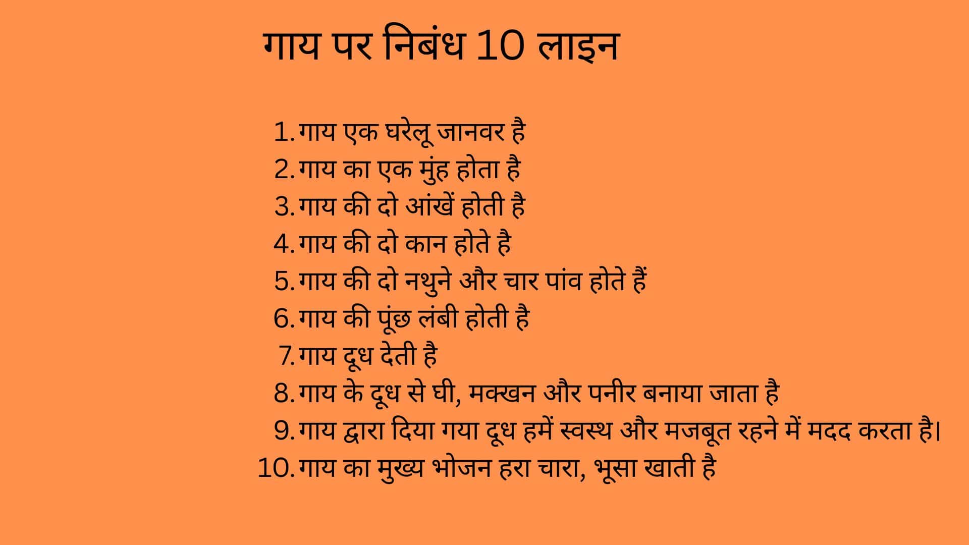 गाय पर 10 लाइन्स नीचे दी गयी है: