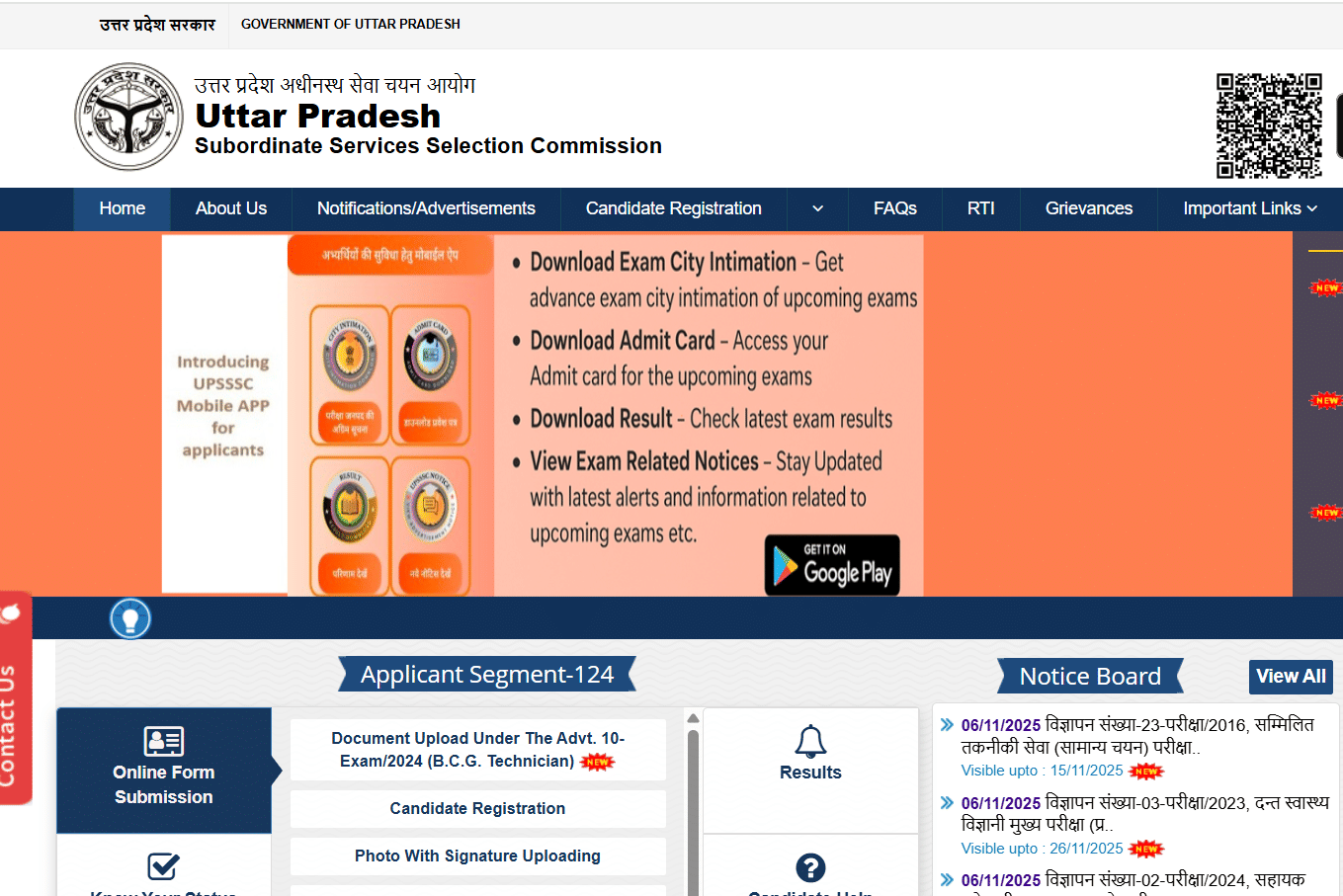 स्टेप 1: यूपीएसएसएससी की आधिकारिक वेबसाइट www.upsssc.gov.in पर जाएं।
